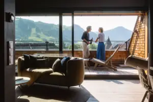 Ciò che lo Schlosshotel Kitzbühel promette all'esterno, lo mantiene anche all'interno. Il design moderno incontra sapientemente la tradizione e un'atmosfera di benessere. Le 115 camere e le 36 suite dello Schlosshotel Kitzbühel sono la vostra casa temporanea in montagna. Entrate, fate un respiro profondo e godetevi lo scenario alpino mozzafiato.